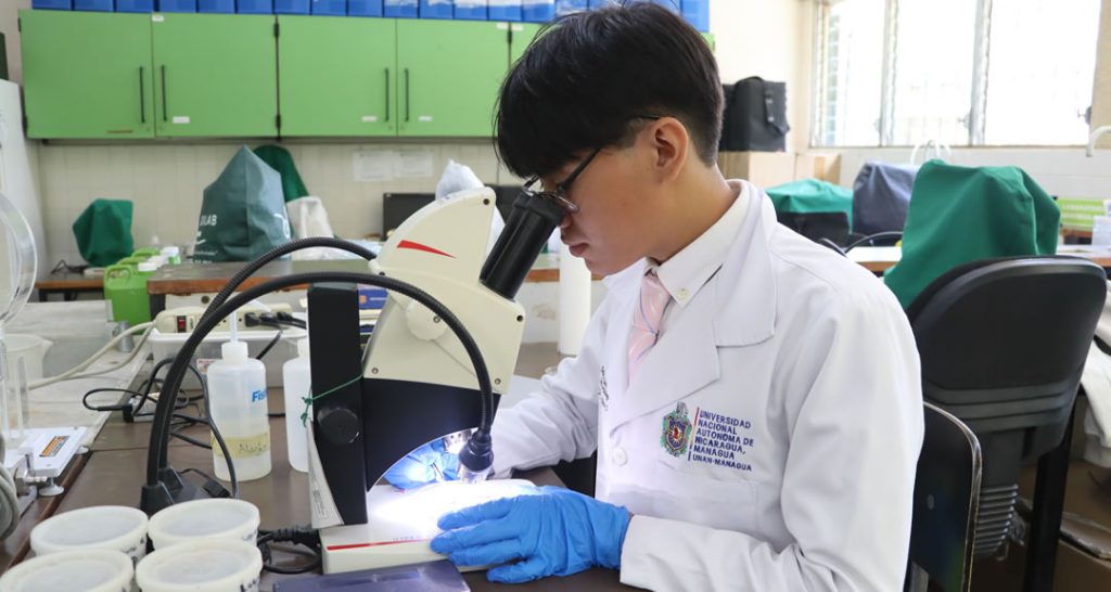 Yahir Rivas: «Mi objetivo como biólogo es aportar al estudio exhaustivo de los ecosistemas acuáticos» Mayo 16, 2025 En mi primera clase de biología me enamoré de la labor que ejercen los profesionales de esta ciencia. A partir de esta experiencia tomé la decisión de cursar la carrera» . En la etapa final de la carrera Biología del Área de Conocimiento de Ciencias Básicas y Tecnología, se encuentra este 2025, Yahir Alberto Rivas Jarquín, un joven de 21 años habitante de Managua, quien manifiesta sentir mucho orgullo y satisfacción por haber elegido una profesión que le permitirá aportar al cuido y conservación de los recursos naturales, siendo el primero de su núcleo familiar en formarse en esta temática. De acuerdo con Rivas, la investigación y el estudio de la vida, áreas que aborda esta ciencia, lo motivaron a la lectura de textos científicos y a la búsqueda de documentales que le despertaran aún más su interés. «Yo no supe lo que era esta ciencia hasta mi quinto año de secundaria cuando recibí por primera vez una clase de biología, desde ese momento me enamoré de la labor que ejercen los biólogos naciendo así mi decisión de ingresar a la carrera», refiere el universitario quien reconoce y agradece el apoyo total de su familia en su proceso formativo. En su investigación monográfica el joven cuenta con el acompañamiento de expertos del Centro de Investigación de Recursos Acuáticos (CIRA); su tema de estudio son los microplásticos, en el marco del proyecto denominado Manejo del área protegida de laguna de Tiscapa, dirigido por la Alcaldía de Managua (ALMA) con el apoyo del CIRA, que le permite colectar sus muestras para analizarlas en el laboratorio de Hidrobiología. «Mi interés por la Limnología y la conservación de recursos naturales me llevó a interesarme por los microplásticos en cuerpos de agua continentales, es un tema emergente con implicaciones ambientales que han sido poco exploradas en el país». Paralelo al desarrollo de su modalidad de culminación de estudios, es protagonista del Técnico en Agronomía, programa que cursa en el Centro Tecnológico Monimbó Heroico en Masaya, instancia hasta donde se traslada los domingos a cursar sus clases. Yahir se ha planteado como prioridad seguir consolidando capacidades mediante otros programas académicos orientados especialmente a la limnología, estudio científico de los ecosistemas acuáticos continentales, como lagos, ríos, humedales y aguas subterráneas. La Universidad, por medio de sus distintos espacios, brinda a los estudiantes la oportunidad de fortalecer los aprendizajes, por ello, Yahir se integró como practicante a los laboratorios de Hidrobiología y Aguas Residuales del CIRA, en los que ha aprendido a colaborar con los investigadores; «los procedimientos son distintos, pero ambas áreas aportaron a mi crecimiento personal y profesional», comenta. Durante cuatro años contó con el beneficio de la beca académica, que le significó un apoyo a las distintas acciones como giras de campo, una de las actividades recurrentes en la carrera y que complementa la teoría, por lo que considera que la Universidad siempre le brindó las herramientas y habilidades para poder lograr una formación integral y de calidad a la que suma los idiomas inglés, nivel intermedio-avanzado y ruso, básico, este último, gracias a las relaciones de hermandad y colaboración entre los pueblos de Rusia y Nicaragua. Dirección de Comunicación Institucional UNAN-Managua Más Perfiles Kathy Jarquín: «Los profesionales de carreras ambientales estamos llamados a aportar a la sostenibilidad ambiental» María Alvarado: «El geógrafo es un profesional integral capaz de aportar a disciplinas como las ciencias de la tierra» Nydelin Gutiérrez Mora: «Las prácticas profesionales son una oportunidad para afianzar habilidades clave en el desempeño» Cargar más Redes Sociales